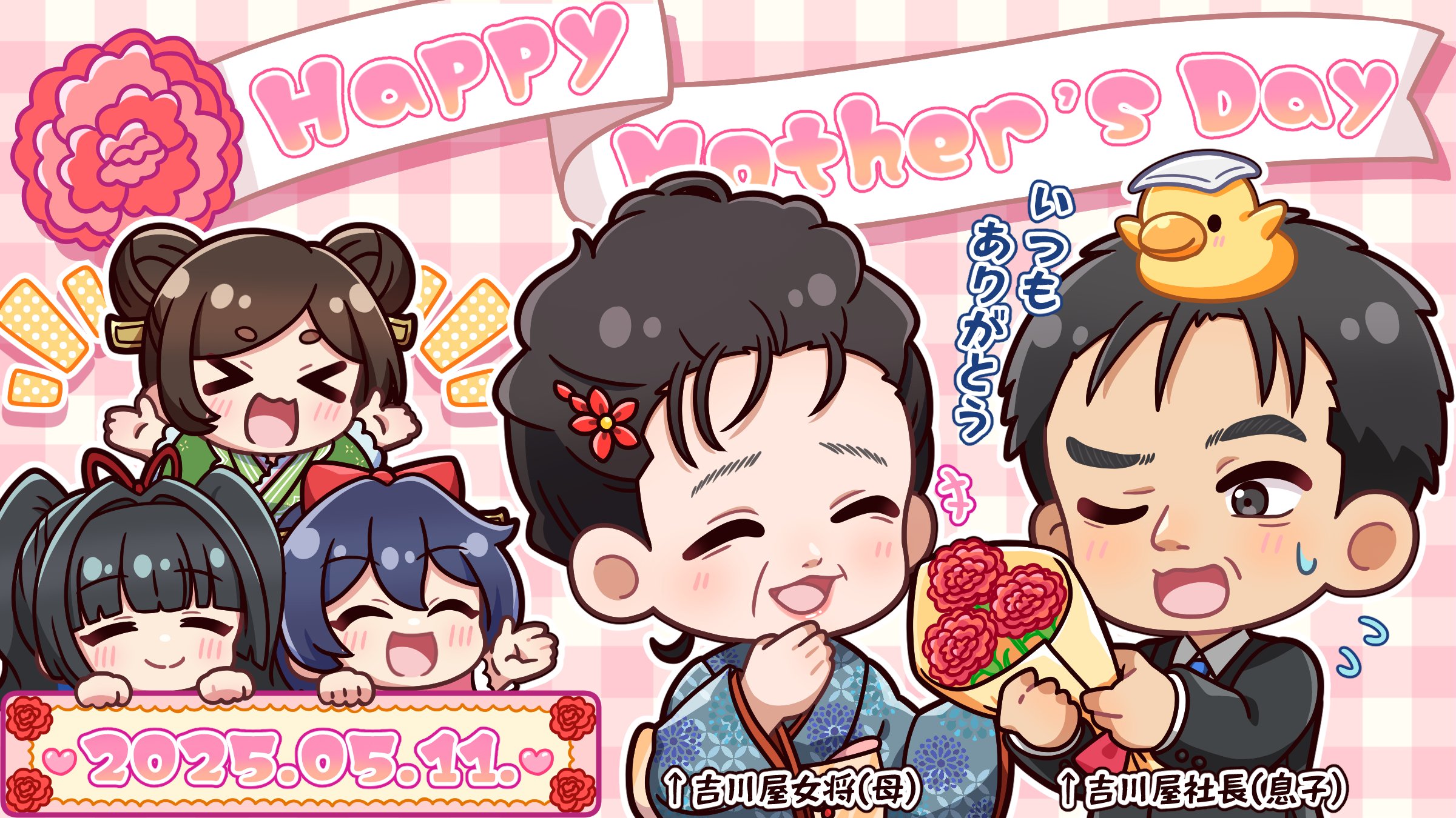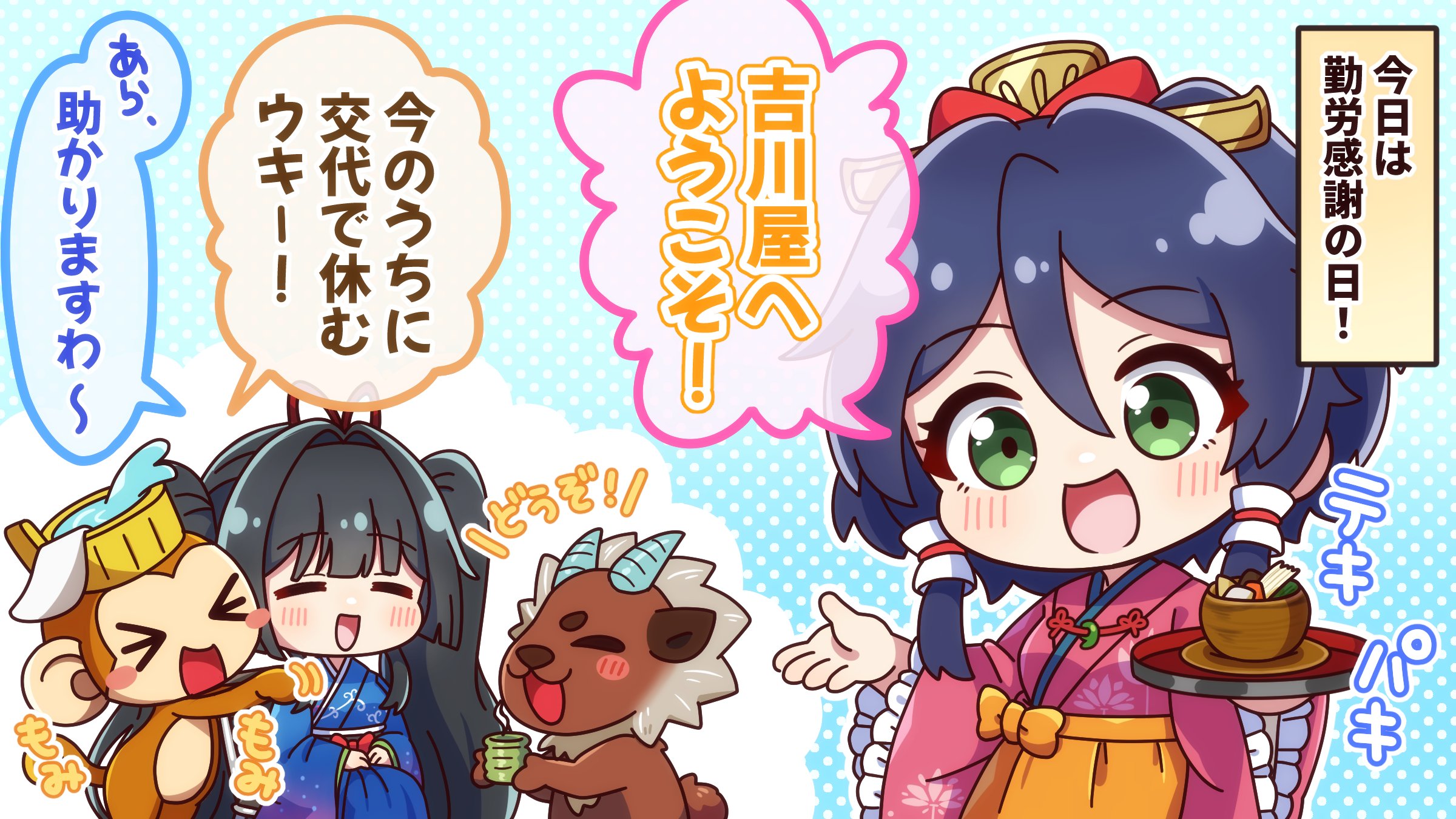 吉川屋の公式キャラクターとして誕生したかむろみ三姉妹(+時々登場する「藤太伝説」の